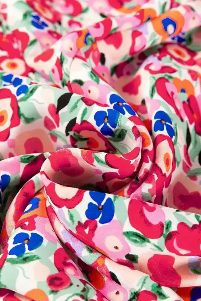 Floral Half Sleeve Deep V Neck Cutout Back Maxi Dress