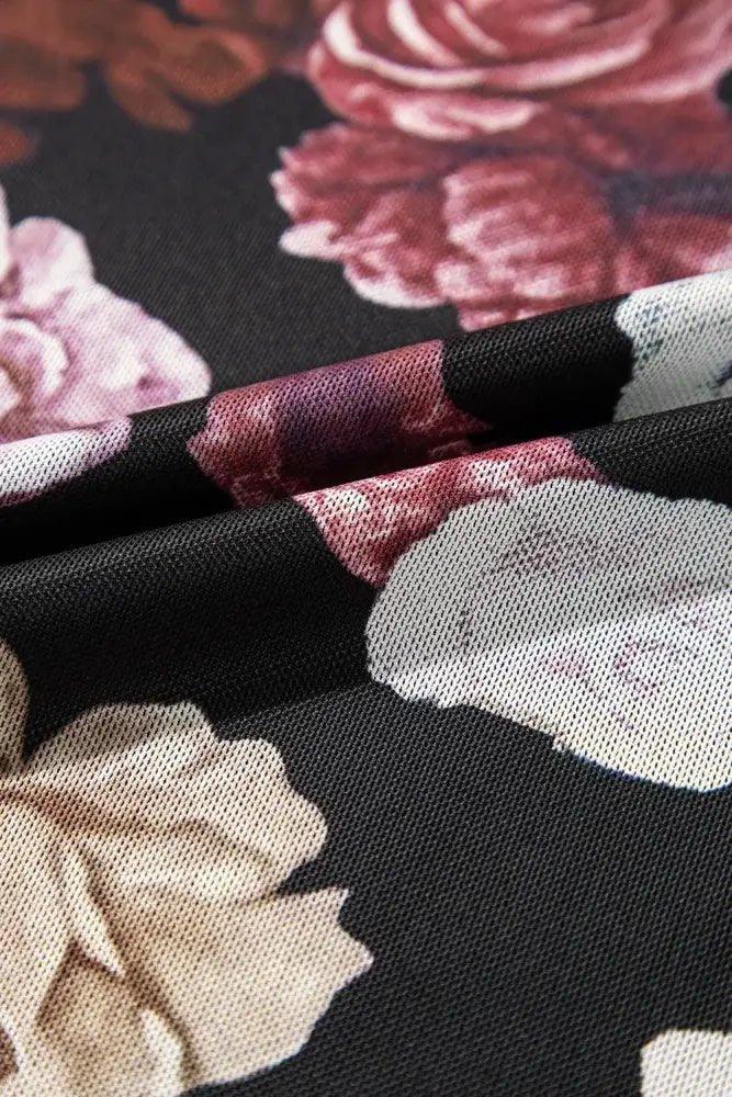 🌸 Elevate Your Wardrobe with Our Floral Mock Neck Long Sleeve Mesh Top! 🌸