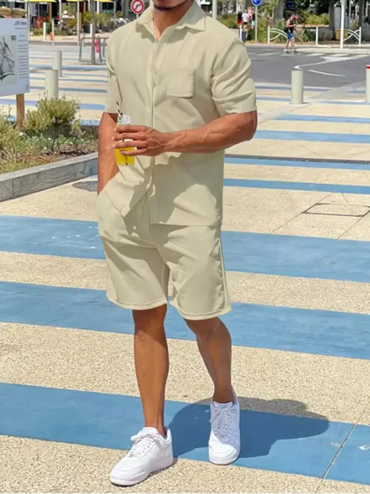 Men's Plus Size Button Up Shirt and Shorts Set