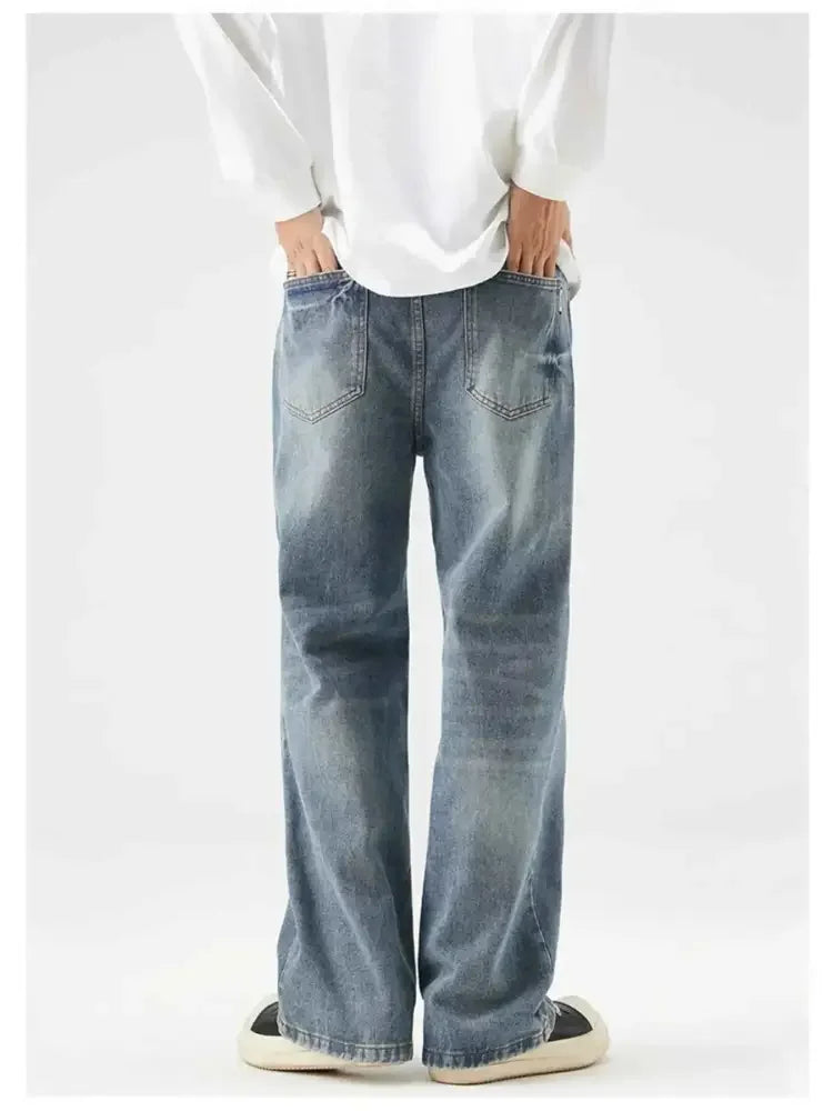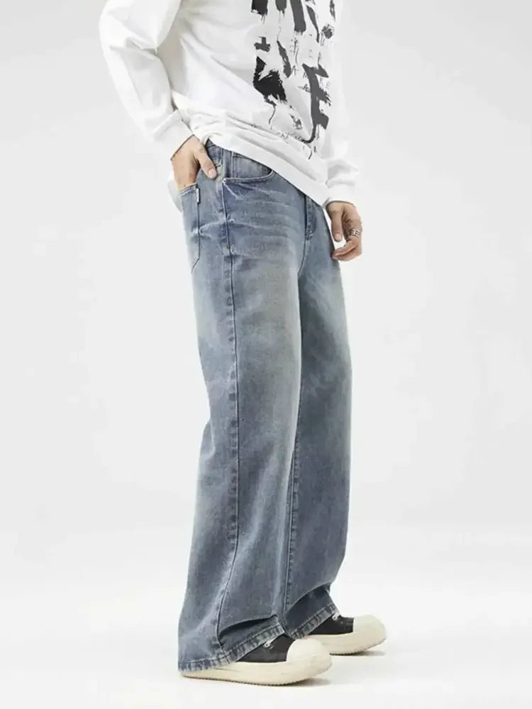 Men's Plus Size Wash Wide Leg Relaxed Fit Jeans