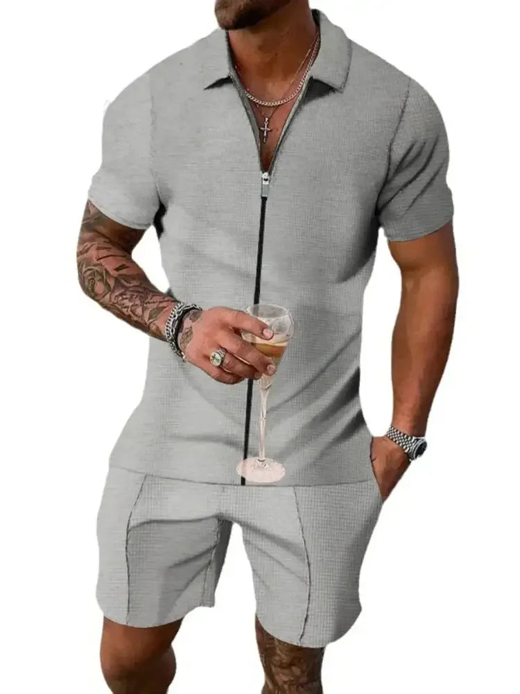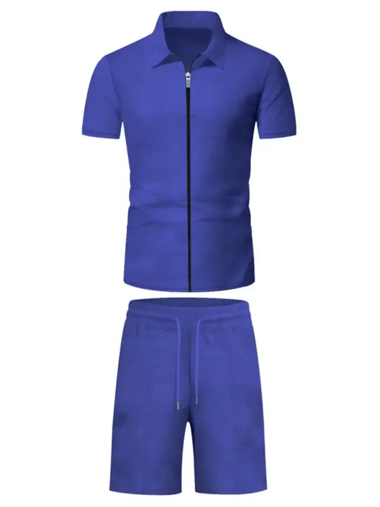 Men's Plus Size Zip Up Short Sleeve Top and Shorts Set