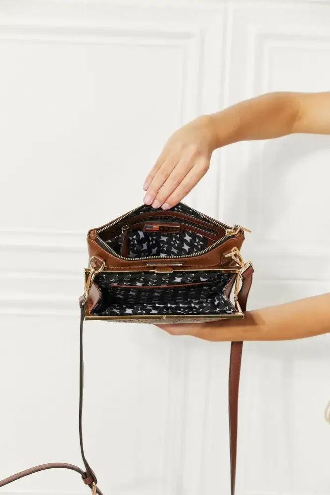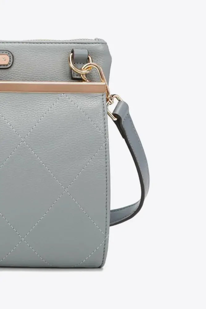 This stunning bag features a durable and stylish exterior made of high-quality pebbled vegan leather that exudes sophistication and class. With an adjustable and detachable strap that offers a drop range of 22.5"-25.5", you can carry this bag comfortably and effortlessly. The swivel snap hooks on the strap attachments allow for quick and easy customization, ensuring a secure fit and ultimate convenience.The front compartment of the bag boasts a top lift release closure and quilted stitching, adding a touch of elegance to the design. The back compartment features a zip top closure that keeps your belongings safe and secure. The D-rings on the strap attachments provide additional functionality, allowing you to attach other accessories to your bag. The logo engraved nameplate and zipper pull, along with the gold-tone hardware, elevate the bag'sgeneralaesthetic, making it the perfect accessory for any style-savvy individual. The front compartment features a back slip pocket, while the back compartment boasts a back zip pocket and key ring strap, along with two front slip pockets, providing ample space to store all your essentials.