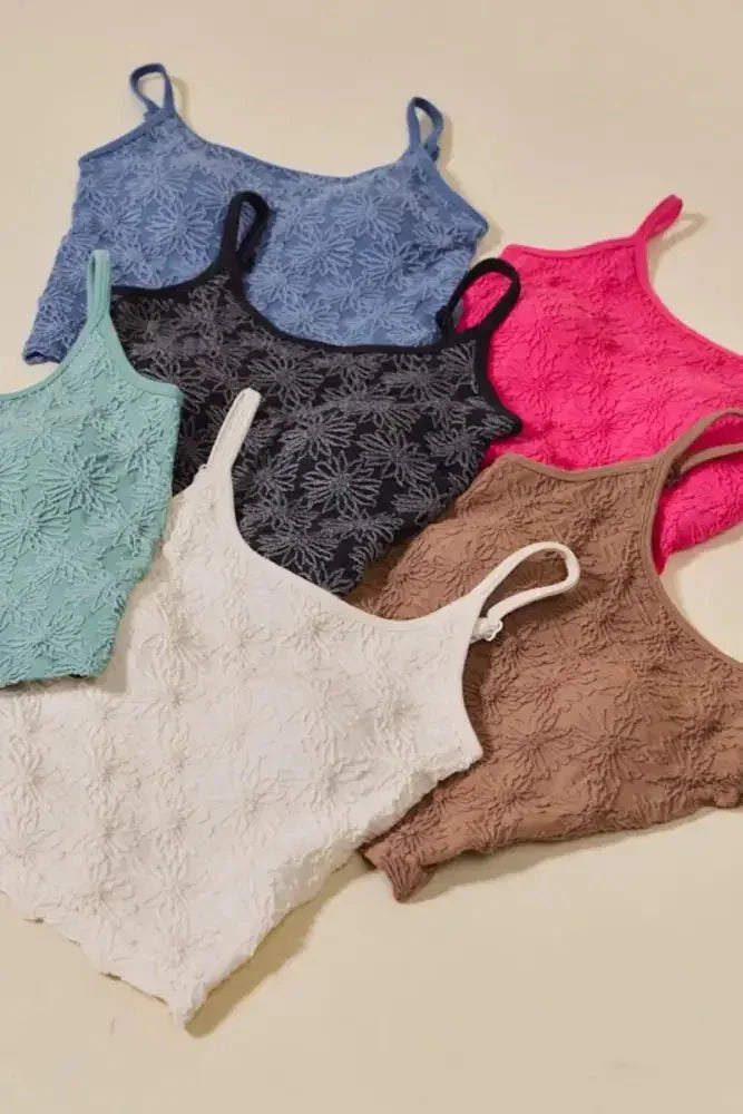This stylish tank top features a two-tone floral design that is seamless for a clean, polished look. Perfect for layering or wearing on its own, this top is a versatile and trendy addition to any wardrobe. The two-tone color scheme adds a modern touch to the classic floral pattern. Stay comfortable and chic all day long in this fashionable tank top.