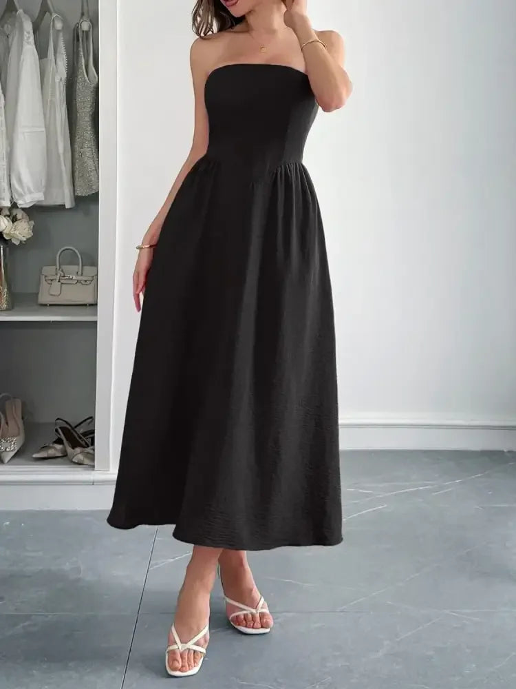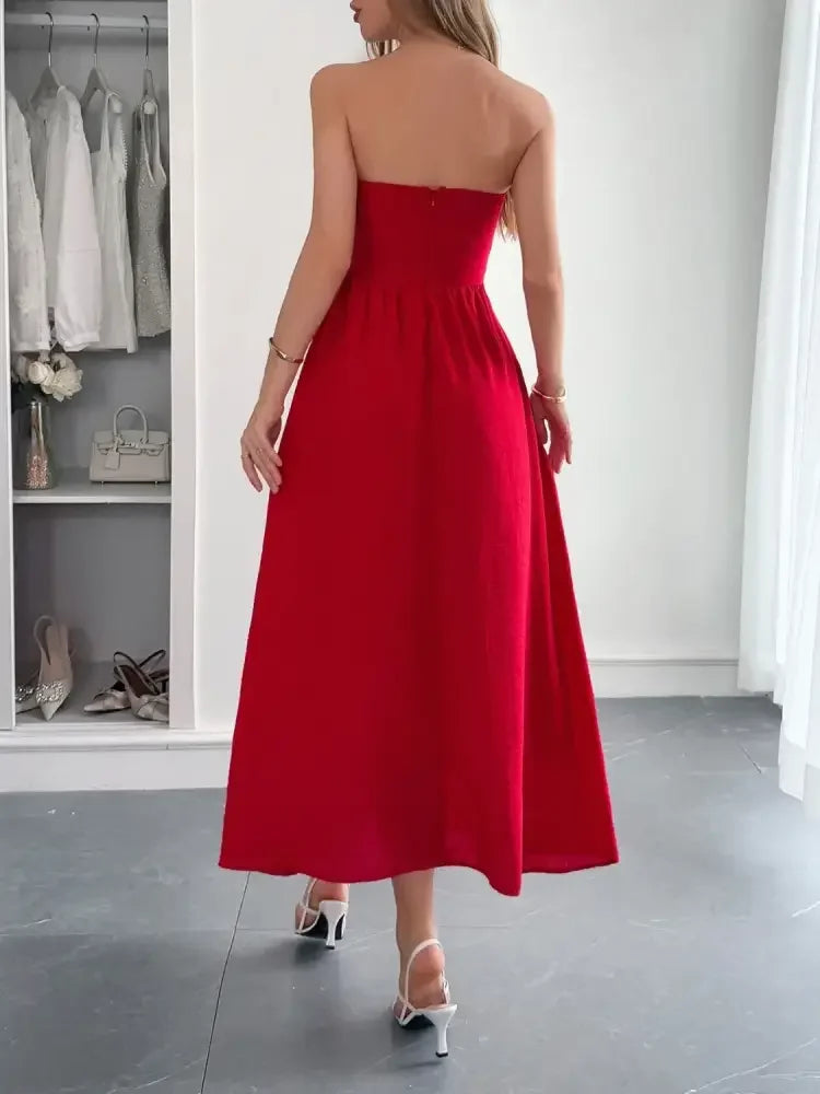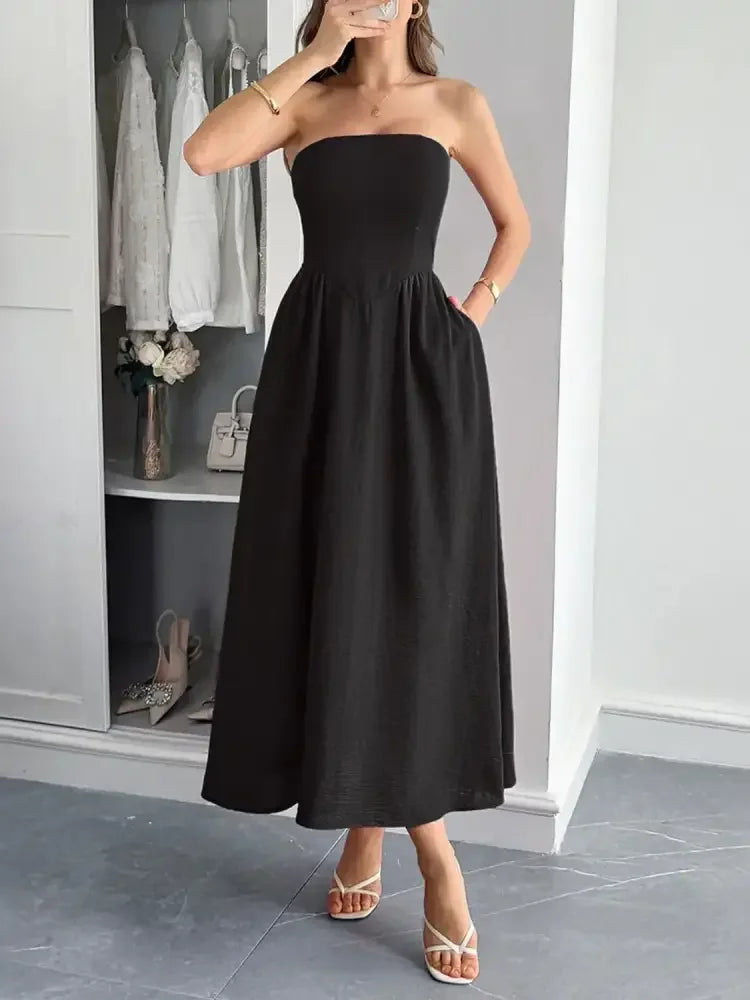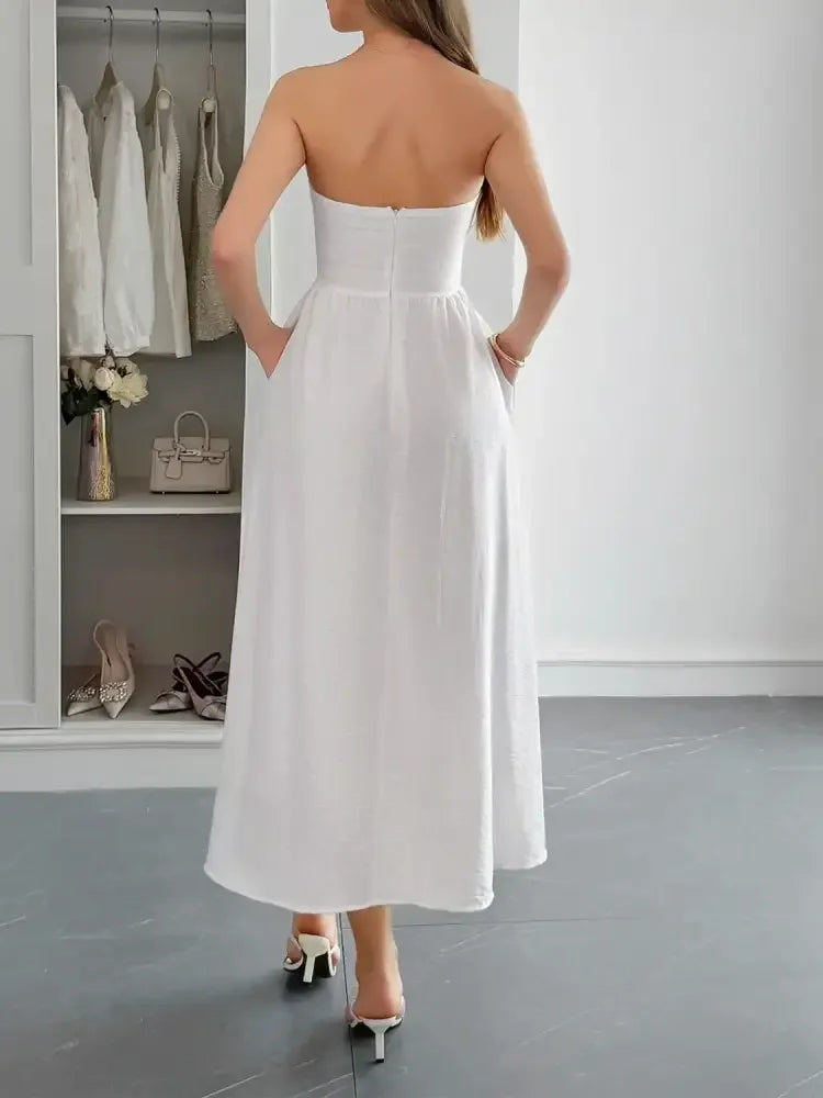 Strapless A-Line Midi Dress with Pockets