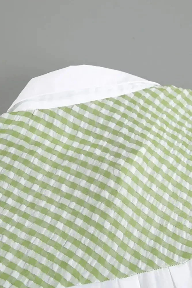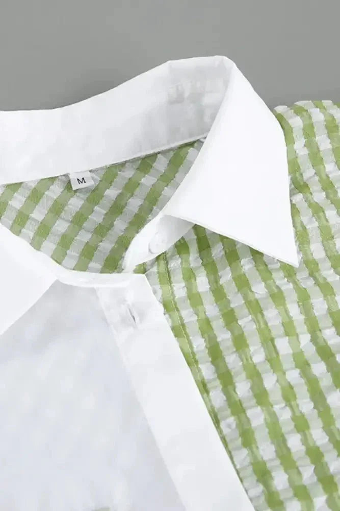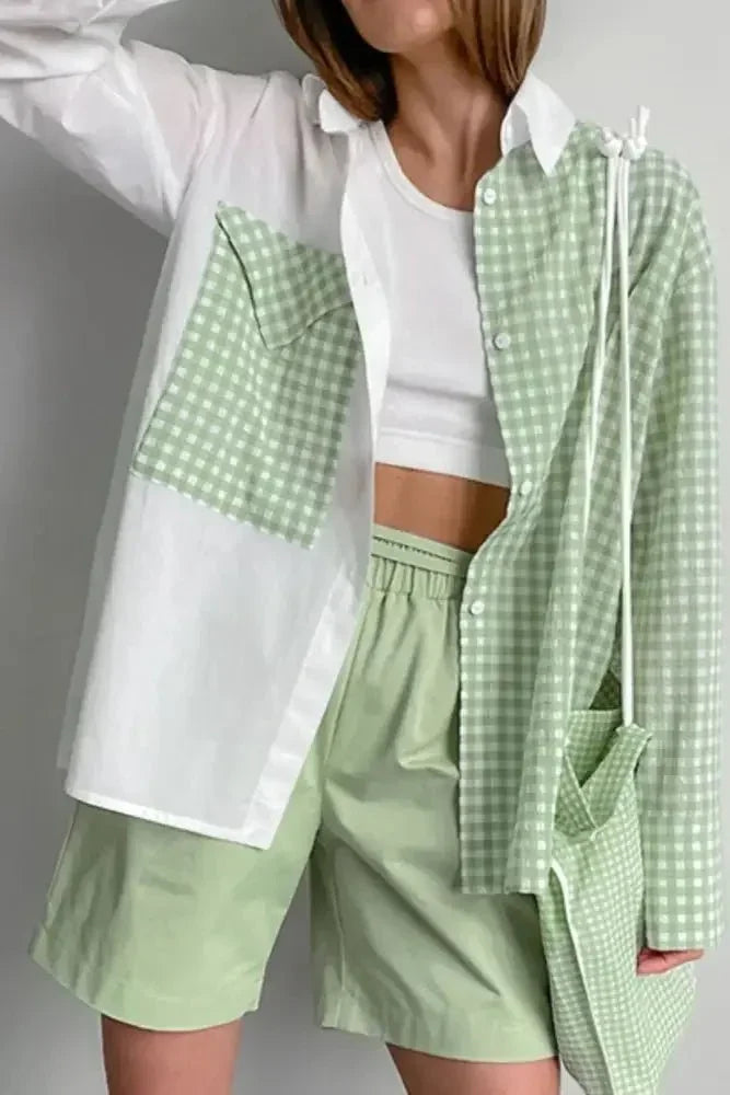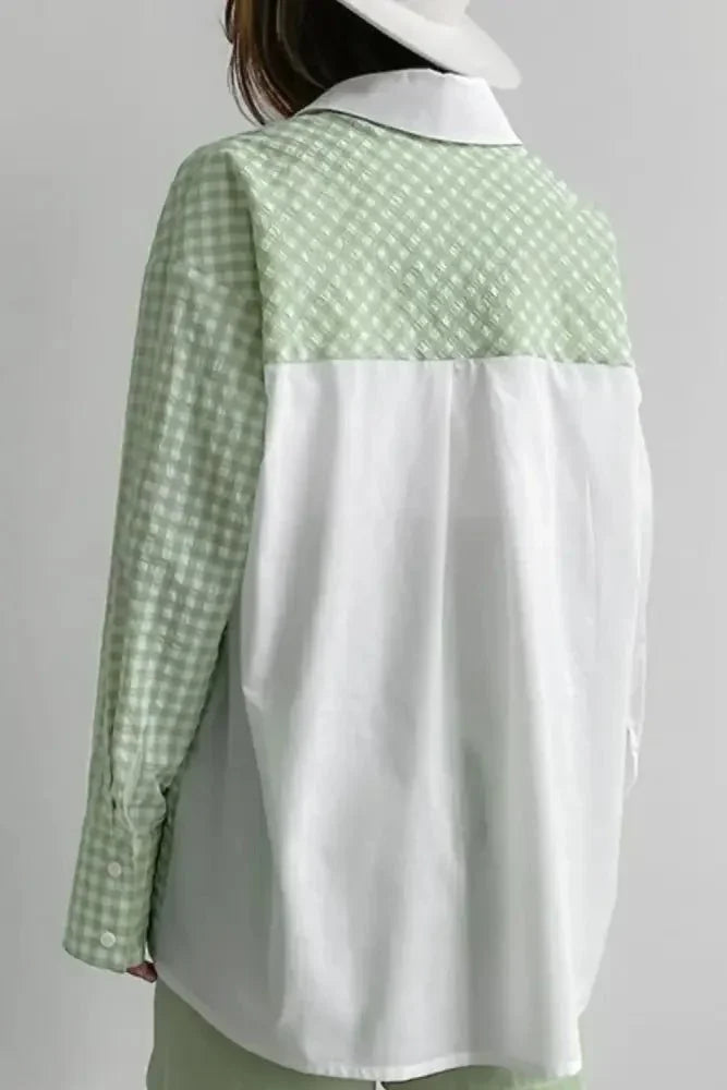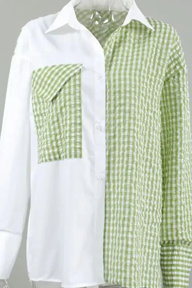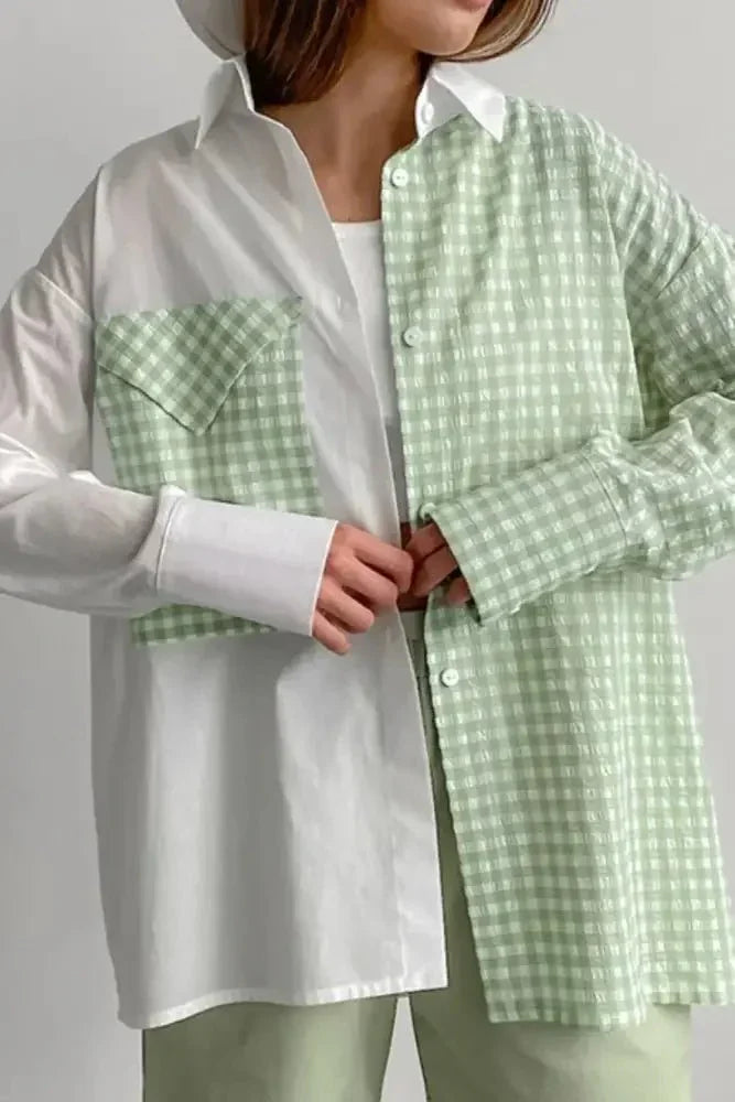 Two-Tone Plaid Button Down Long Sleeve Shirt