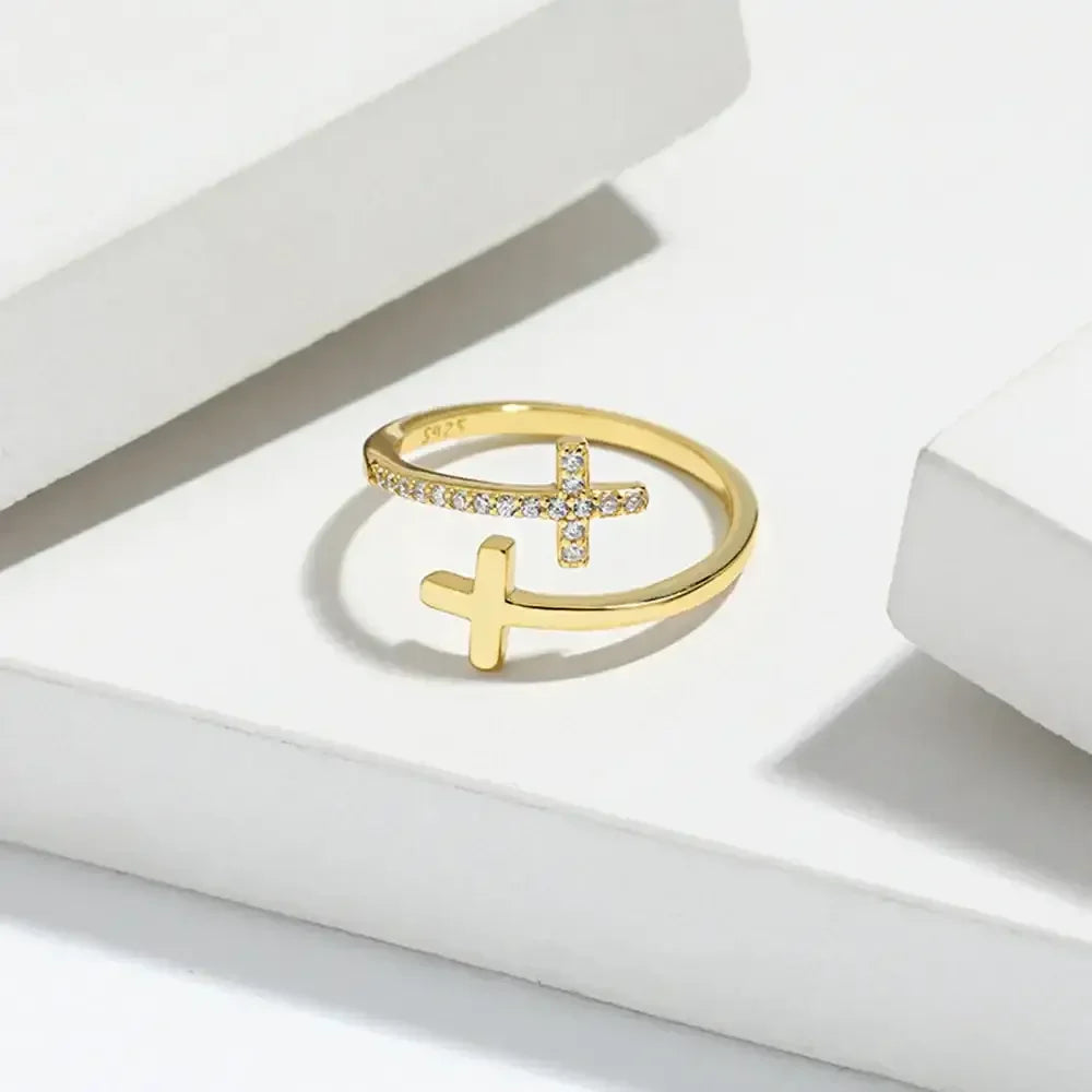 Zircon 925 Sterling Silver Double Cross Bypass Ring